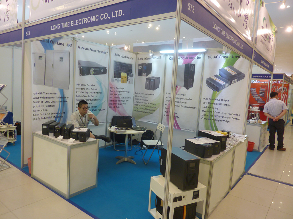 扬州永达电源第一次出国参展,该公司的太阳蓄存电池可以埋在地下、放在水下,提供路灯照明及应急场所如政府大楼、医院、学校、银行、电讯基站便用,所以广受缺电之苦的柬埔寨欢迎,客户不断,效果不错。但第一次洽谈略缺火候,希望回国后主动与买家继续保持联系。