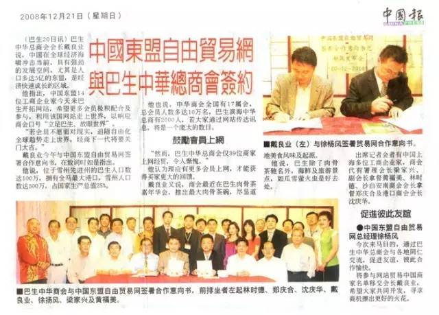 马来西亚《中国报》:中国-东盟自由贸易网与巴生中华商会签约