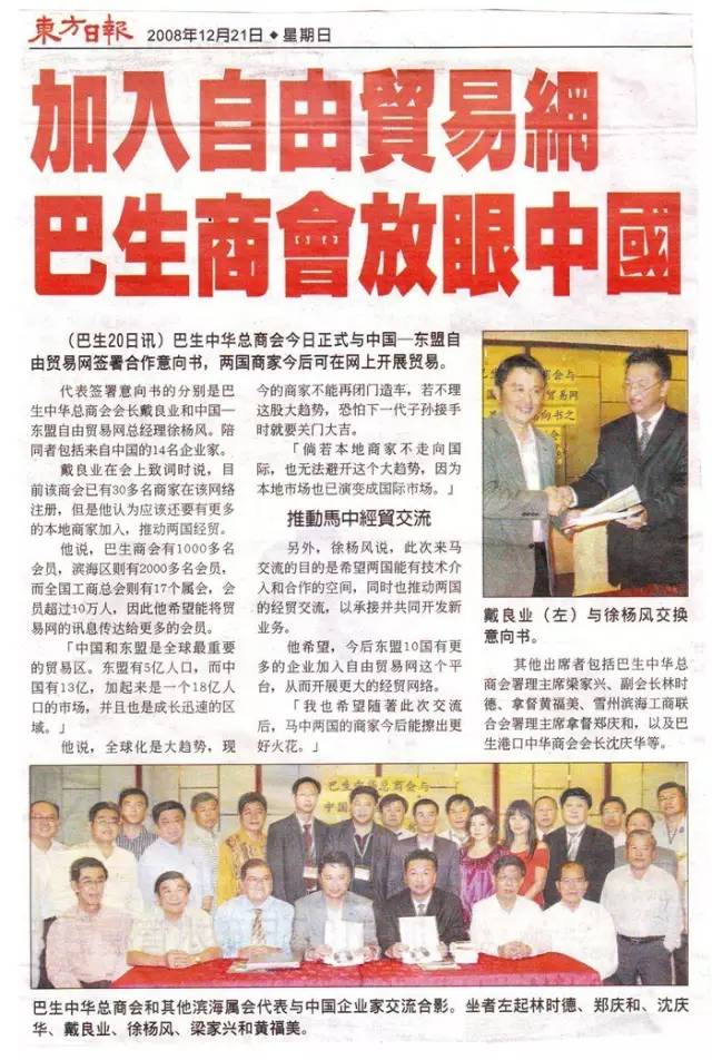 马来西亚《东方日报》: 加入自由贸易网,巴生商会放眼中国