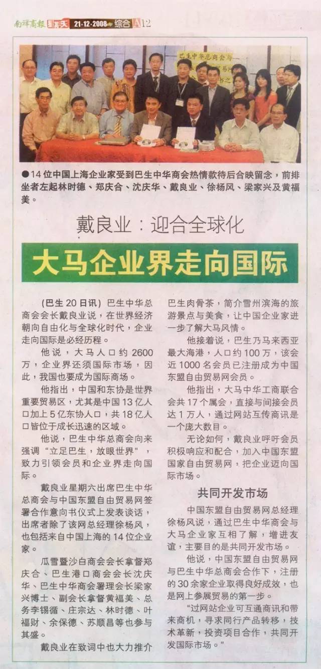 2010年《南洋商报》:中国-东盟自由贸易网成立6年,网上交易大马企业达15万