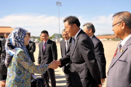 5月15日,郑祥林大使到机场为文莱外交与贸易部无任所大使玛斯娜公主赴华访问送行。