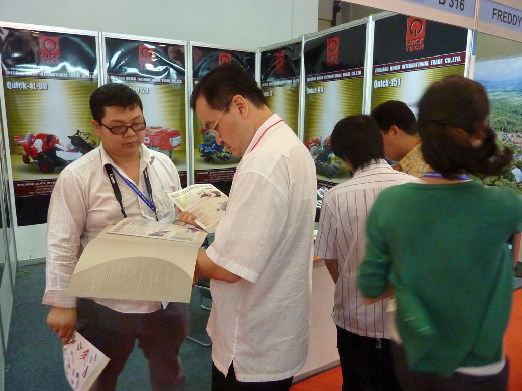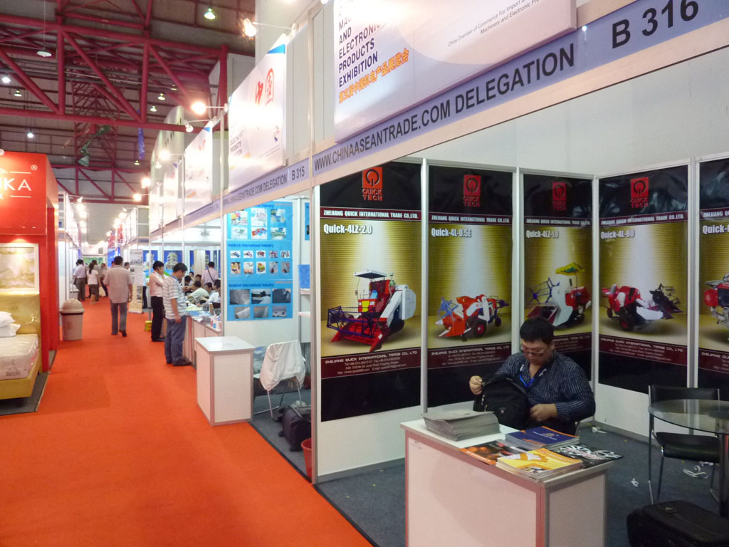浙江快捷进出口有限公司生产小型联合收割机引来众多买家,邹总说:“有6家专业用户和代理意谈妥合作意向。”