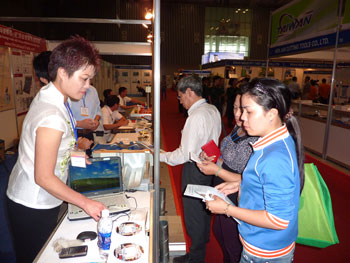 为会员制作的1000张展会推荐光盘除了赠送柬中贸易促进会外,在现场被越南采购商一扫而光。