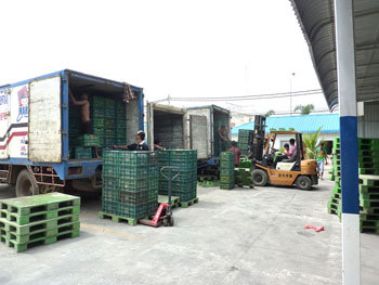 一进厂门,6辆卡车正紧张装货销往柬埔寨全国。
