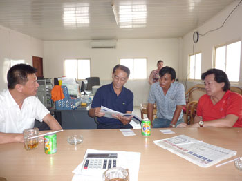 总经理针对我们设备样本,提出很都专业问题,并委托我们帮他买彩钢板卷材,因为该厂生产彩钢板所有材料均从台湾进口,柬埔寨没有,我们答应了他的请求。