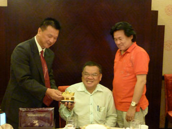 徐总代表《中国一东盟自由贸易网》向副总理赠送上海世博会纪念品“东方之宝”。