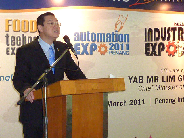 槟城市长宣布2011年3月马来西亚摈城国际工业展开幕。