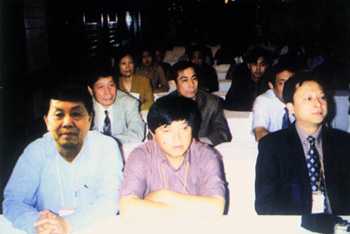 上海亚亿五金贸易公司总经理潘敏(左二)与5家泰国装潢,五金公司洽谈了代理事宜