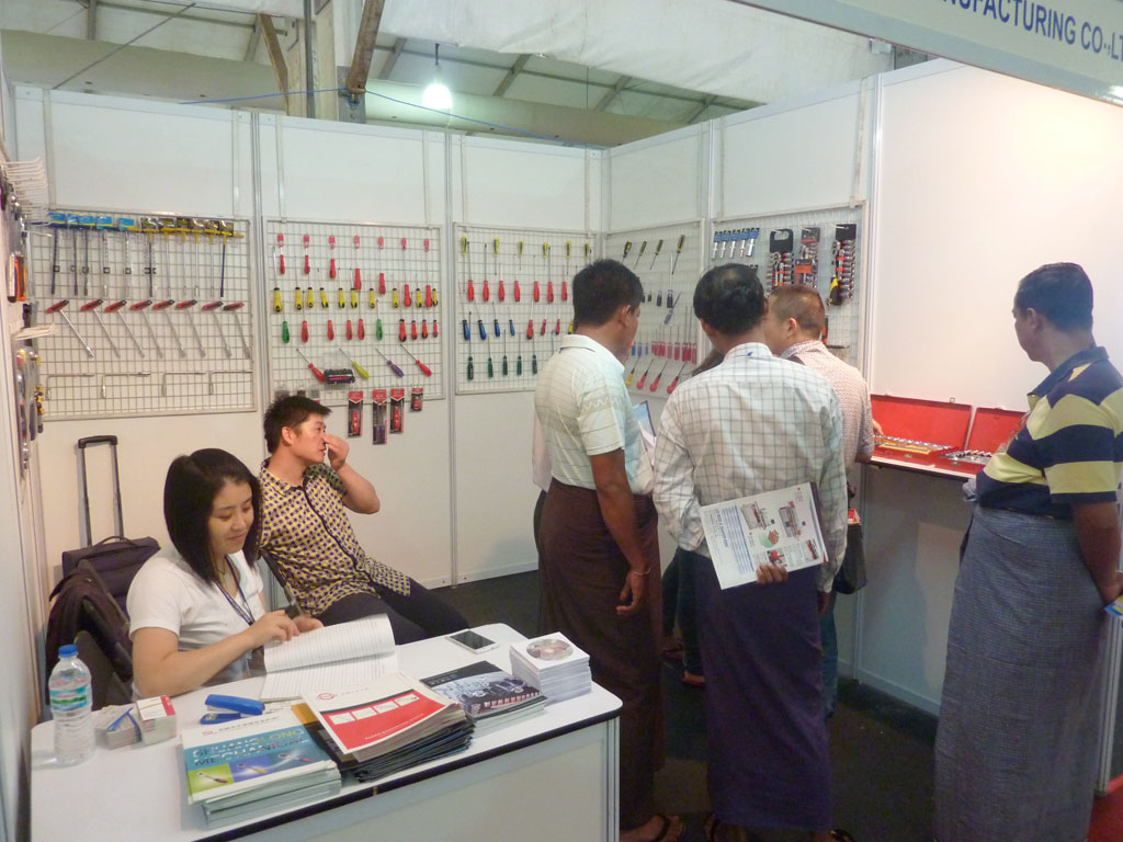 上海帝刚工具已在印尼、越南、泰国均有代理商,缅甸过去只能做些边贸,因美国刚对缅甸取消制裁而实现革新开放,所以进入缅甸参展,潘总说:不错,交到很多朋友。
