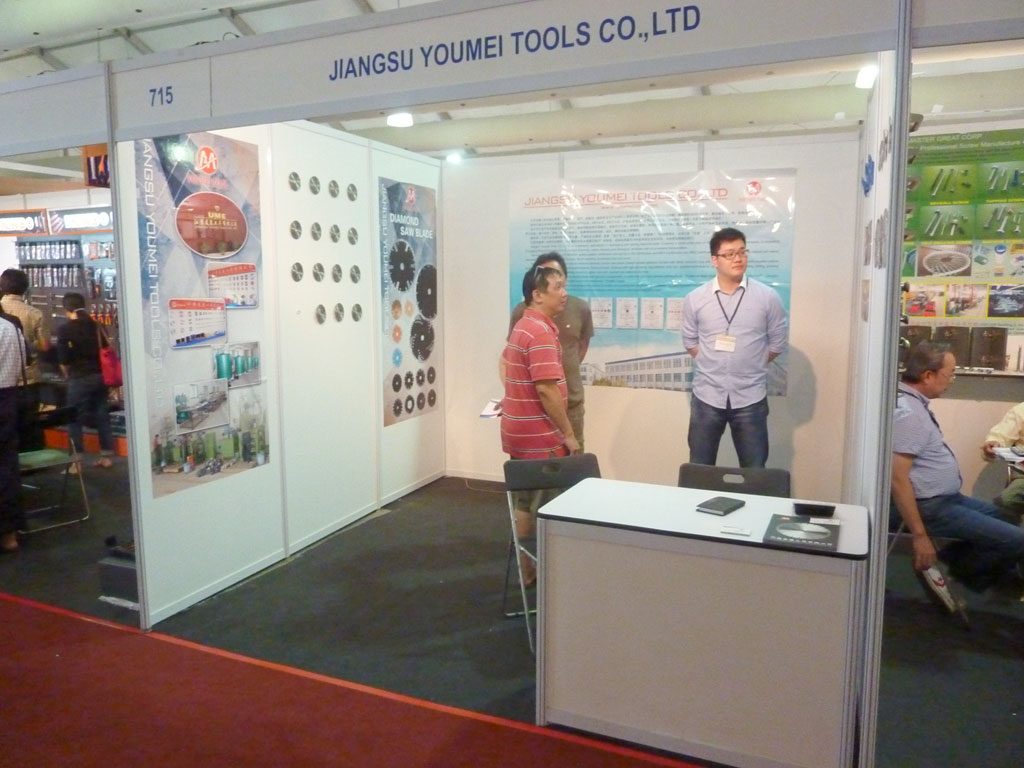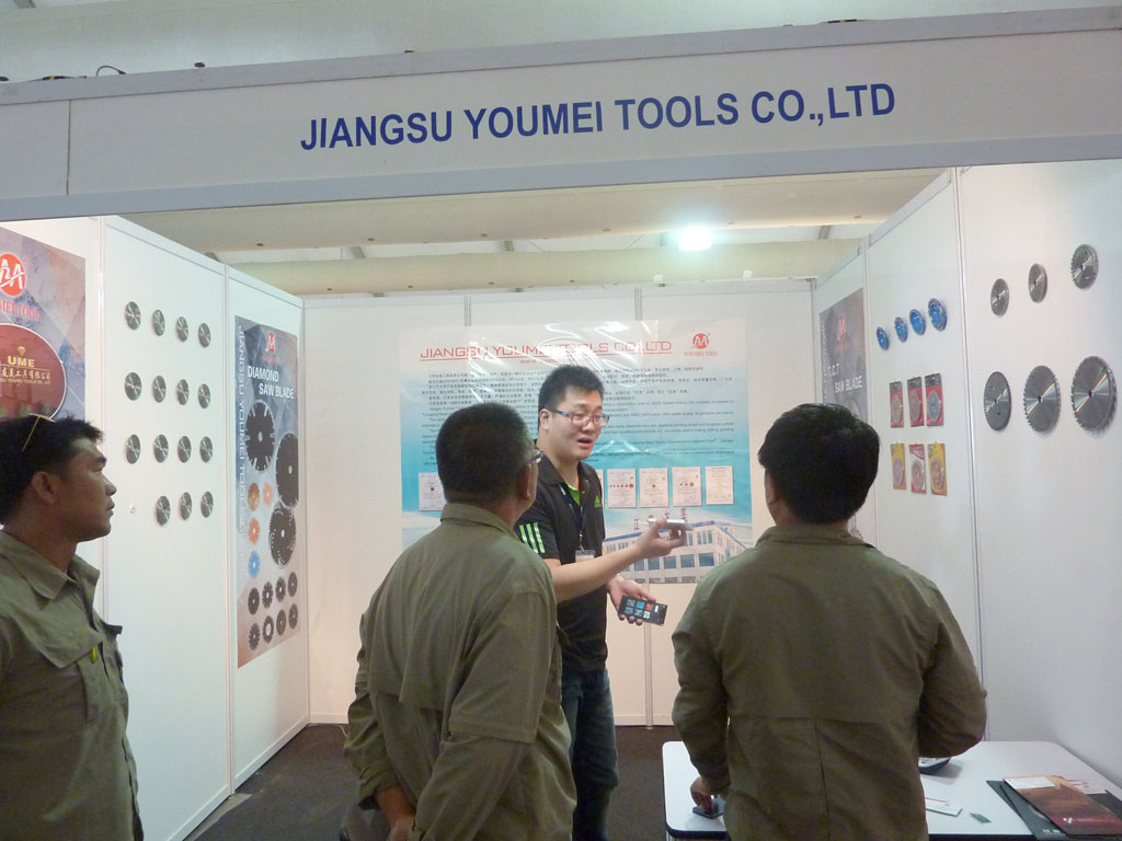 随团第二次参展的江苏友美工具以生产金刚石锯片、合金锯片为主,全年销售额1亿人民币,由于木工机械同期举办,专业买家和代理商众多,所以又请了一位翻译帮助接待。
