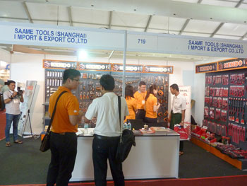 上海西美工具过去主打欧美市场,年销售额1亿美元,此次转战缅甸投入巨资,两个展位,展品空运,派出4位统一着装外贸人员,引来众多媒体釆访和买家采购,西美通过店面和仓库考察后最终选择一位销售德国博世工具的代理商,展品被代理商全部陈列在拥有6个展位大的店面、与德国品牌一起销售。第一次东盟参展就成功登录东盟第四大人口国缅甸市场