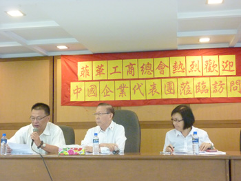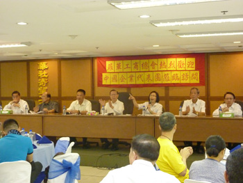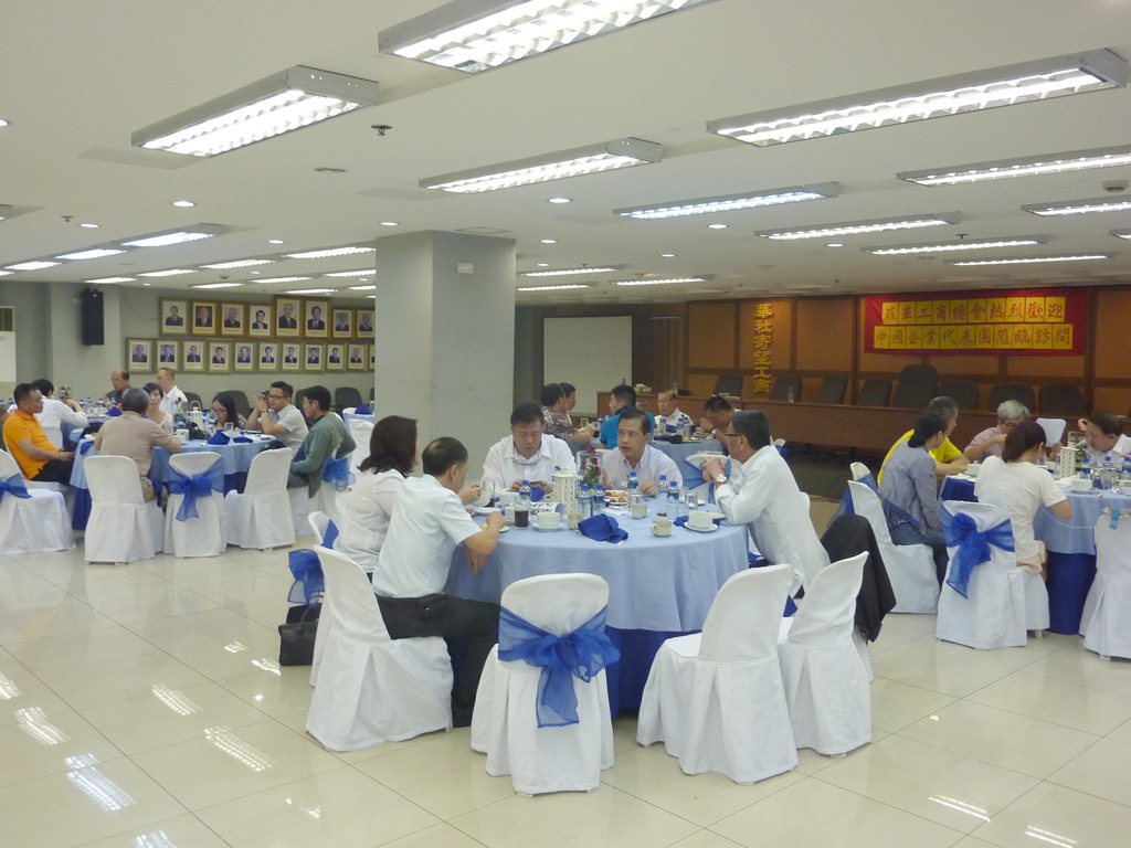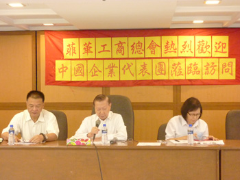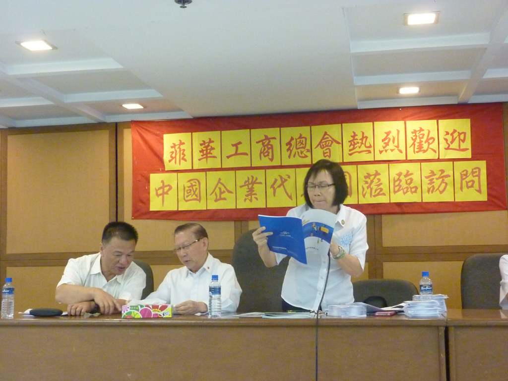 中国-东盟自由贸易网负责人感谢菲华工商总会在推动两国贸易所作努力,并介绍 代表团各企业。