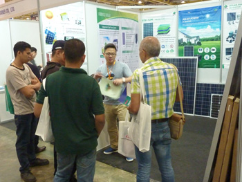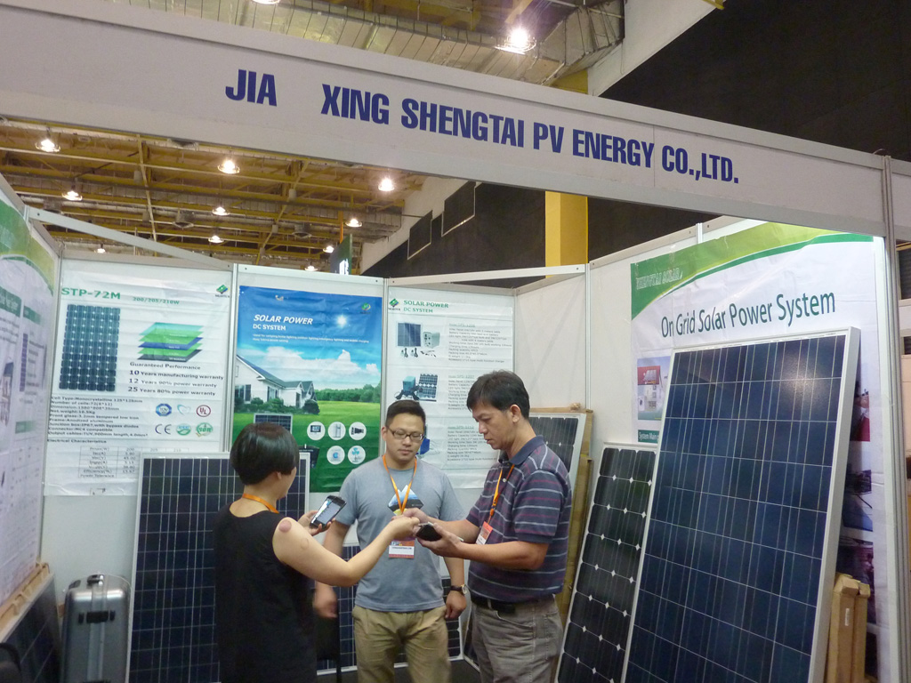 嘉兴盛泰光伏能源接待众多买家,据该买家说“国内英利等2家知名企业已进入菲律宾,而且销售不错,因为菲有7000多个岛屿,而且电价是亚洲最贵的国家,所以政府强制电力公司购买一定比例再生能源,企业3年免税,所以大家都在搞太阳能”。