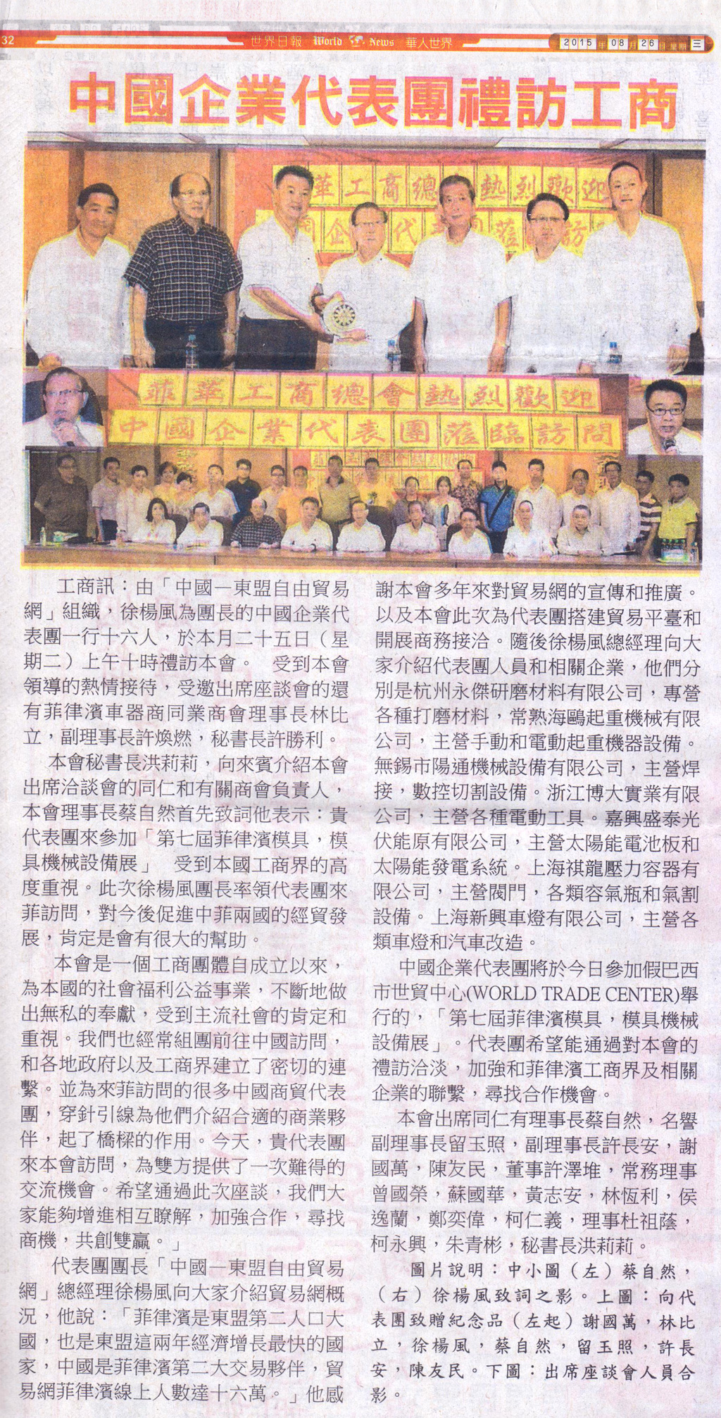 2015年8月第三届菲中贸易对接会暨中国产品推荐会在菲华工商总会举行