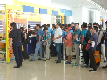 《中国供应商》光盘在展会服务处,根据买家登记信息提供,买家高兴地拿到光盘。